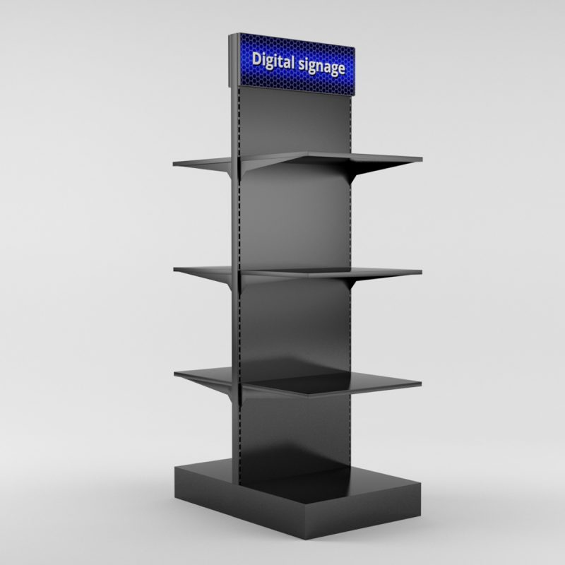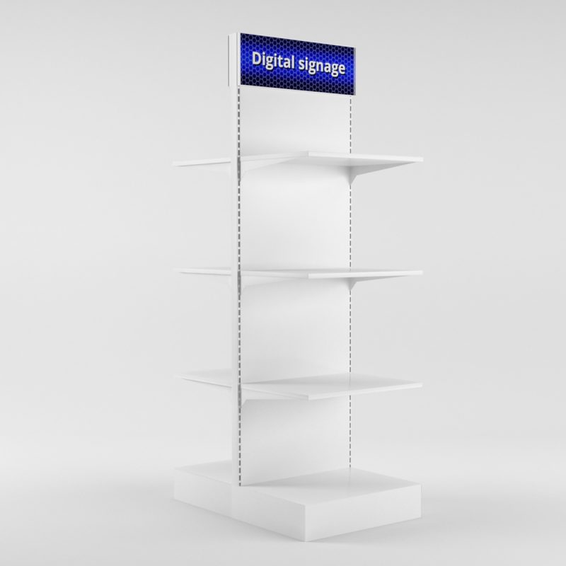 Dubbelsidigt golvställ med digital signage